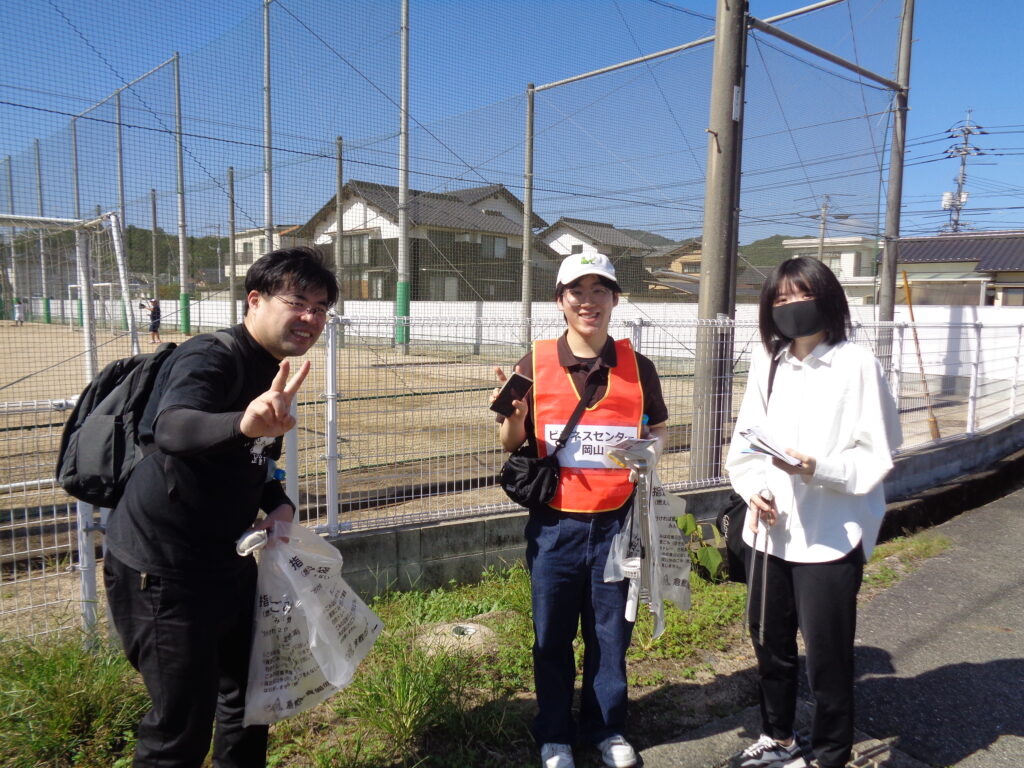 真備陵南高校や大学生、地域住民、当社社員、ボランティア駅長など13チーム・56人が参加し、「駅から街をキレイに!」を合言葉に、真備町箭田地区を歩きながらごみ拾いなどのクリーン活動を行いました。