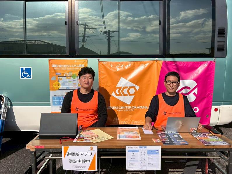 ビジネスセンター岡山株式会社は、2024年11月23日(日)に倉敷市真備町で開催された「箭田地区地域連携防災訓練」に出展し、当社が開発中の顔認証による避難所受付アプリ「My Shelter(仮称)」を展示いたしました。