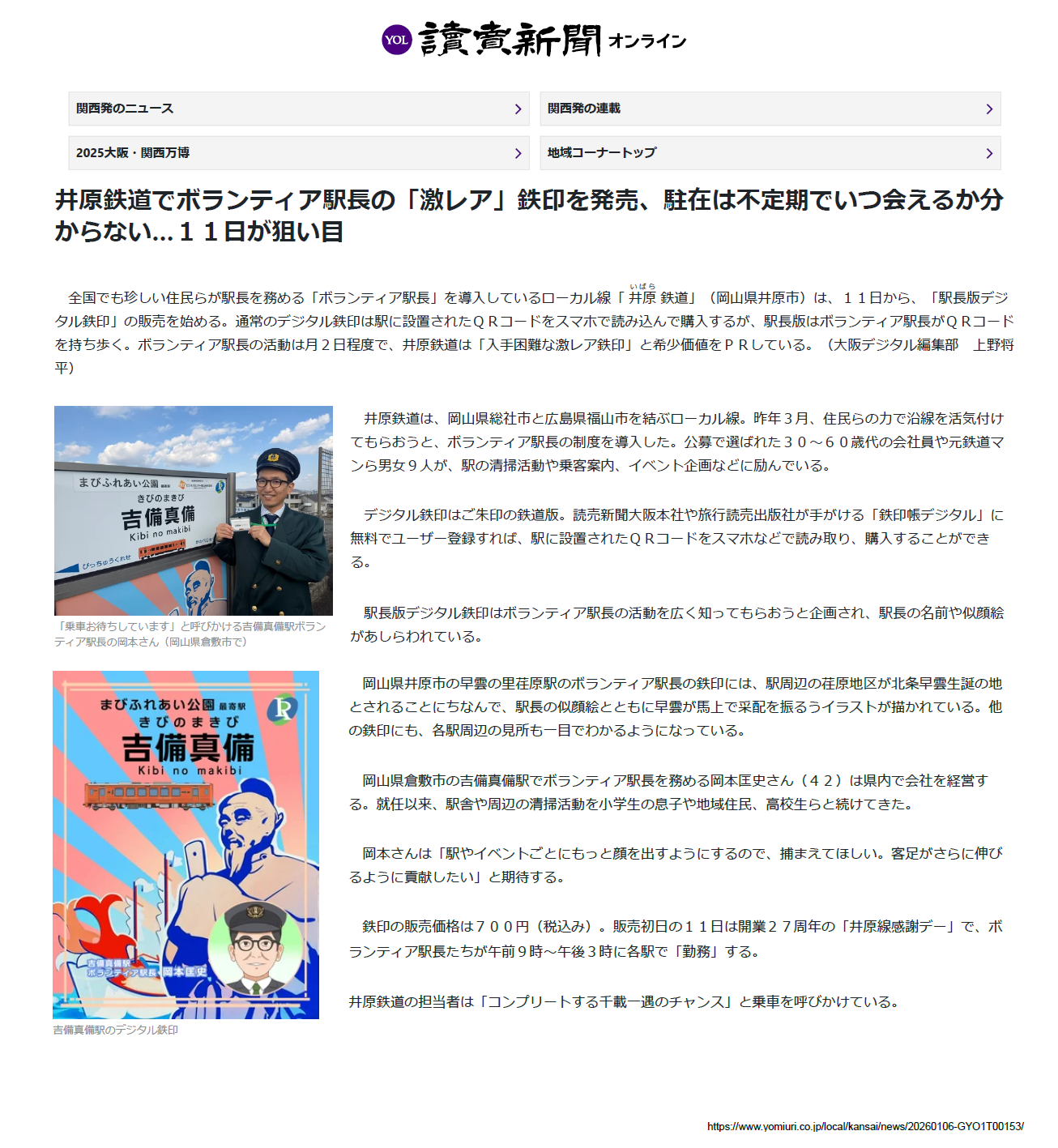 このたび、弊社代表取締役社長が関わる取り組みとして、「激レア鉄印」の発売が行われ、その内容が 読売新聞オンライン、Yahoo!ニュース にて紹介されました。
